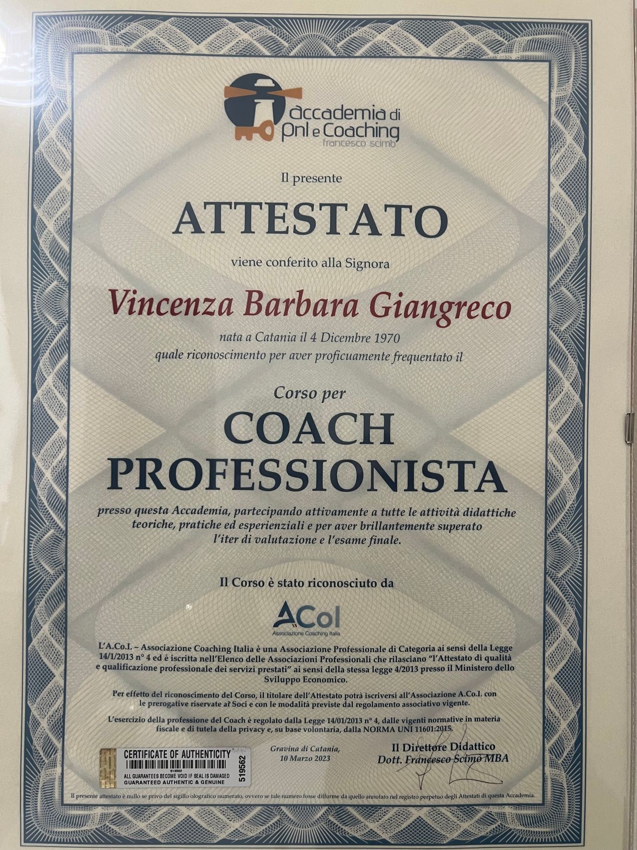 Sono Enza Giangreco e mi sono laureata in Psicologia Clinica e Riabilitativa presso l'Università di Catania. Attualmente svolgo la mia attività clinica di consulenza e Sostegno psicologico, oltre a offrire servizi di Life Coaching, presso il mio studio privato a Gravina di Catania.
